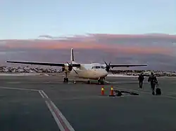 Nordsjøfly commenced a services between Stavanger, Haugesund and Bergen in 1976.[17] They flew three times daily to Bergen and twice daily to Stavanger, while SAS flew twice daily to Oslo.[18] From 1979 this increased to three daily flights.[19] In the first years the opening hours were a contended issue as the airport was closed in the middle of the day and late evenings.[20] From 27 December 1976 a third shift was introduced, significantly increasing the airport's operational hours.[21] The general aviation and mostly helicopter operator Fonnafly established an office at the airport the following year.[19]