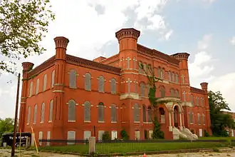 Built in 1875, the Hebrew Orphan Asylum in Baltimore, Maryland replaced the old Calverton Mansion (built in 1815) when a fire destroyed the mansion in 1874.[3] The Hebrew Orphan Asylum, which started in 1872 in the Calverton Mansion depended on donations from people within the Baltimore Jewish community, including the wealthy German Jewish community that had settled within the city. The history of the asylum follows the history of the Jewish community in Baltimore, which increased rapidly with immigration from Europe in the 19th and 20th centuries. The building transitioned to serve as the West Baltimore General Hospital from 1923 through 1950 and finally the Lutheran Hospital of Maryland from 1950 to 1989.[4] While associated structures associated with the Hebrew Orphan Asylum, the West Baltimore General Hospital, and the Lutheran Hospital of Maryland were demolished in 2009, the original four-story brick Romanesque structure still stands.[5]