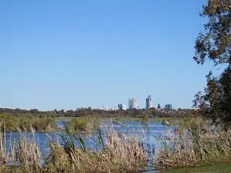 ![]() The western shore of Herdsman Lake with the skyline of Perth in the background | |||||||||||||||