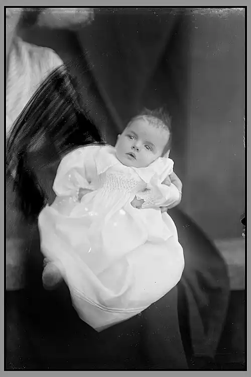Late example of the technique, where mothers were made 'hidden' by manual retouching and masking on the portrait negative.