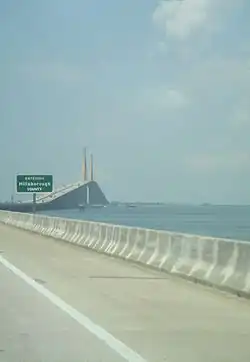 A narrow portion of Hillsborough County to the south, consisting almost exclusively of water, extends west to the Gulf of Mexico roughly along the Tampa Port Shipping Channel. This has the effect of keeping Hillsborough County from being technically landlocked. The central portion of the Sunshine Skyway Bridge is in Hillsborough County. So is Egmont Key, at the entrance to Tampa Bay; this narrow strip of land separates Pinellas County from Manatee County. The northernmost tip of a spoil island just west of Port Manatee also lies in Hillsborough County.
