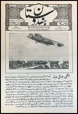 Hindostan (Urdu: ہندوستان), was the first Urdu-language newspaper produced in Germany during the First World War for Indian Muslim prisoners of war (POWs). Published by the German Foreign Office’s propaganda machinery in Berlin from March 1915 through August 1918, the two-page handwritten issues—reproduced via photolithography—were part of German propaganda efforts to promote jihad and shift the allegiance of POWs held in camps like Wünsdorf’s Halbmondlager and nearby facilities.[1][2][3][4][5]