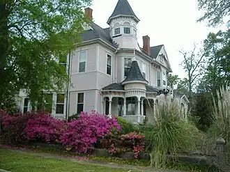 Frank W. Williams Home (905 31st Ave) – located on the same lot as Merrehope.[11] Built in 1886, the home is an example of Queen Anne style architecture with stained glass, oak paneling, parquet floors, and detailed gingerbread. Many original features and antique furnishings are still in the home. The house was designated a Mississippi Landmark on June 14, 1995.[12]