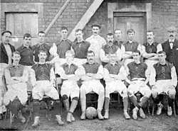 Confusion over the original date arose in the mid-1990s and continues to arouse controversy, with the club accepting the earlier date and then reverting to the original during the late 21st century. Former club statistician Paul Plowman researched the early history of the club during the period 1990–95 and discovered newspaper reports of a game in 1879 between Swindon Association Football Club and Rovers F.C..[1] The report and team photos show William Pitt playing for the team.[2] Reverend Pitt, who was 23 at the time, was the curate of Christchurch, Swindon's central church. He was appointed Rector of Liddington church in 1881 and severed his ties to the club. Plowman was given the role of Swindon Town Retail Manager in 1995 and the kit for the 1995–96 season carried an "Est. 1879" tag, since removed.[1] Further discoveries include an after-dinner speech at the Southern League championship celebrations in 1911 made by Reverend Pitt in which is recalled: