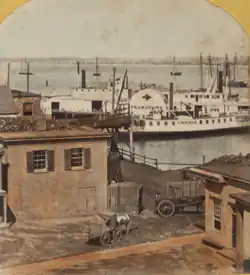 A stereoscopic image of ferries at Hoboken, 1865
