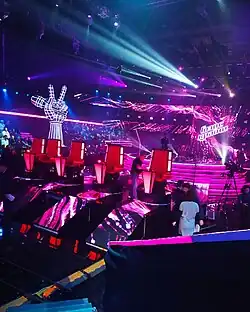 Holos Krainy (Ukrainian: Голос країни, lit. 'The Voice of the Country') is a Ukrainian reality talent show that premiered on the 1+1 network on 22 May 2011. Holos Krainy is part of the international syndication The Voice based on the reality singing competition launched in the Netherlands as The Voice of Holland, created by Dutch television producer John de Mol Jr.. It was the second international adaptation of the programme, after the American version. There is also a children version of the same show, Holos. Dity.[1]