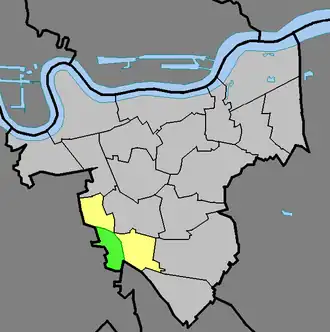 - ^ a b c d e f Nicholson Greater London Street Atlas Comprehensive Edition p.184 (2003) ISBN 0-583-33291-9 shows borough boundaries and roads