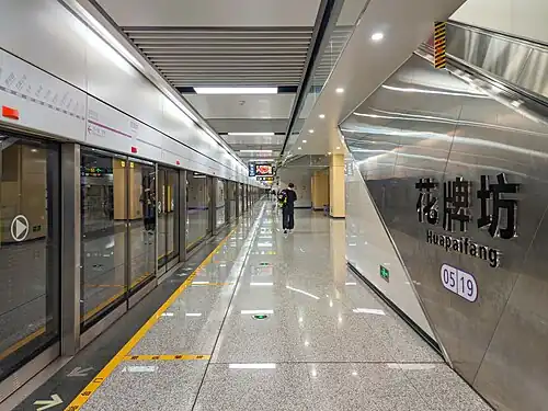 Huapaifang (Chinese: 花牌坊) is a station on Line 5 of the Chengdu Metro in China. It was opened on 27 December 2019.[1][2]