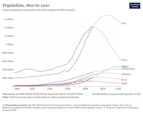 - ^ Roser, Max; Ritchie, Hannah (March 18, 2023). "Two centuries of rapid global population growth will come to an end". Our World in Data.