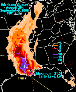 - ^ CoCoRaHS. Total Precipitation Summary for Louisiana: September 1–3, 2008. Retrieved on 2008-09-03.