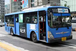 The Hyundai New Super Aero City (Hangul:현대 뉴 슈퍼 에어로시티) is a heavy-duty single-decker bus manufactured by the truck & bus division of Hyundai. It was introduced in 1991. It primarily used as a city bus and an intercity bus as either a complete bus or a bus chassis. It is distinguishable by a front 'Aero City' badge, but the common Hyundai badge is usually on the rear. The model's principal competitors is the Daewoo BS106 Royal City, but it also competed against the now-discontinued Kia AM bus series (originally Asia AM).