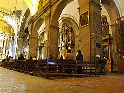 The complex includes two chapels located on both sides of the church. The "Chapel of the Indians" or "Chapel of la Virgen de Loreto" built in 1571 and rebuilt after the earthquake of 1650 and the Chapel of San Ignacio on the left side of the church[14] that is currently the headquarters of the Society of Artisans of Cusco.