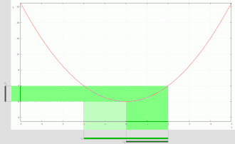 Image showing non-equal sets: The sets and are shown in blue immediately below the -axis while their intersection is shown in green.
