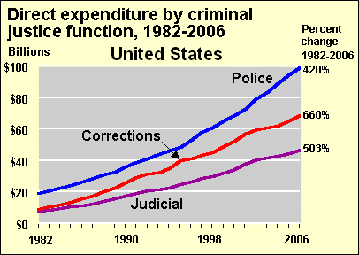 Researcher Valerie Jenness writes, "Since the 1970s, the final wave of expansion of the prison system, there has been a huge expansion of prisons that exist at the federal and state level. Now, prisons are starting to become a private industry as more and more prisons are starting to become privatized rather than being under government control."[22]