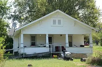 The J.M. McCall House is a historic house on Spring Street in Marshall, Arkansas. It is a single-story wood-frame structure, with a gable roof, walls finished in novelty siding, and a stuccoed foundation. The roof eaves have exposed rafter ends in the Craftsman style, and the front porch (facing west) is recessed under the roof, supported by four tapered square posts. Built about 1910, it is a well-preserved local example of Craftsman architecture.[2]