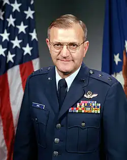 Jones earned a bachelor of arts degree (cum laude) in mathematics from Miami University, Oxford, Ohio, in 1956 where he was a member of Phi Kappa Tau.[1] He received a master's degree in public administration from Auburn University in 1975. General Jones was a distinguished graduate of Air Command and Staff College in 1968, and the Air War College in 1975. Both schools are located at Maxwell Air Force Base, Alabama.