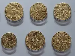 - ^ Adam de Cardonnel, The Edinburgh Magazine, vol. 4, August (1786), p. 112, and Numismata Scotiae, (1786), p. 83, note both legends: Pitscottie, History of Scotland, Glasgow, (1749), p. 214; Spencer, Nathaniel, The Complete English Traveller, (1772), p. 575; Archaeologia Aeliana, vol. 3, (1859), p. 228.