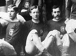 ![]() McAdam (centre) with other members of the Glasgow select team in 1880. | |||