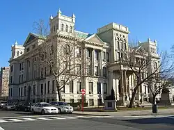 Jersey City is home to several institutions of higher education such as New Jersey City University, Saint Peter's University and Hudson County Community College. As the county seat, Jersey City is home to the Hudson County Courthouse and Frank J. Guarini Justice Complex. Cultural venues throughout the city include the Loew's Jersey Theatre, White Eagle Hall, the Liberty Science Center, Ellis Island, Mana Contemporary and the Museum of Jersey City History. Large parks in Jersey City are Liberty State Park, Lincoln Park and Berry Lane Park. Redevelopment of the Jersey City waterfront has made the city one of the largest hubs for banking and finance in the United States and has led to the district and city being nicknamed Wall Street West.[40] Since the 1990s, Jersey City has been a destination for artists and hipsters.[41] With the city's proximity and connections to Manhattan, its growing arts, culture, culinary and nightlife scene and its own finance and tech based economy, apartment rents in the city have grown to become some of the highest in the United States.[42][43] In response, Jersey City has instituted zoning and legislation to require developers to include affordable housing units in their developments.[44] In 2023, Travel + Leisure ranked Jersey City as the best place to live in New Jersey.[45]