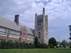 - ^ Goodnough, Abby. "Once Upon a Time, When High Schools Were Palaces", The New York Times, October 6, 1996. Accessed December 21, 2011. "NINETY years ago, an enormous Beaux Arts building went up on a hill overlooking the Hudson River. It had Corinthian columns, terrazzo floors and a vestibule lined with English marble. It could have passed for a palace, or at least a palatial estate. But it was neither. It was, in fact, William L. Dickinson High School, the first public secondary school in Jersey City.... When it opened in 1906, Dickinson had a 2,000-seat auditorium used not just for school functions but for political debates, plays and concerts."
