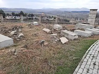 In September 2009, the Štip Museum started with the renovation of the Jewish Cemetery. According to Zoran Čitkušev, the then director of the museum in Štip, it was planned to renovate and conserve the graves. At the same time, it was planned to arrange the cemetery itself, build an access road and install a fence wall. The renovation was carried out with funds from the Central Government, the Ministry of Culture and the Office for Protection of Cultural Heritage.[4] On April 1, 2015, a memorandum for cooperation was signed between the Štip Municipality and the Ministry of Culture, with which in 2016 the protective wall of the cemetery was built and completed. Today, there are 120 Jewish tombstones in the cemetery, placed horizontally, according to the Jewish burial method.[3]