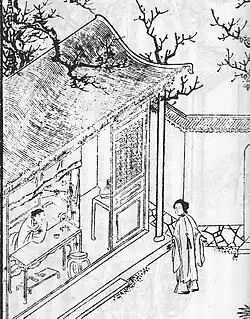 Jin Ping Mei (Chinese: 金瓶梅)—translated into English as The Plum in the Golden Vase or The Golden Lotus—is a Chinese novel of manners composed in vernacular Chinese during the latter half of the 16th century during the late Ming dynasty (1368–1644). Consisting of 100 chapters, it was published under the pseudonym Lanling Xiaoxiao Sheng (蘭陵笑笑生), "The Scoffing Scholar of Lanling,"[1] but the only clue to the actual identity is that the author hailed from Lanling County in present-day Shandong.[2] The novel circulated in manuscript as early as 1596, and may have undergone revision up to its first printed edition in 1610. The most widely read recension, edited and published with commentaries by Zhang Zhupo in 1695, deleted or rewrote passages to help understand the author's intentions.[3]
