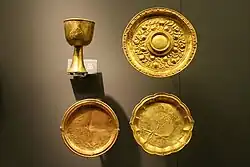 After conquering Kaifeng and occupying northern China, one of the suggestions on which of the wuxing ('five elements') to choose for their state was "metal" due to its association with "gold", their state name. This suggestion came as a nativist current that distanced the Jin from the Song and interpreted the Jin as an indigenous development rooted in Northeast Asia unrelated to the precedents of previous Chinese dynasties. However, the emperor dismissed the suggestion of adopting "metal" as their wuxing element.[8] Instead the Jin deliberately chose earth as its dynastic element and yellow as its royal color. According to the wuxing theory, the earth element follows the fire, the dynastic element of the Song, in the sequence of elemental creation. This ideological move shows that the Jin regarded the Song reign of China as officially over and saw themselves as the rightful ruler of China Proper.[9]