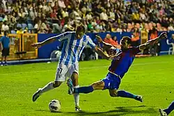 On 24 June 2011, Joaquín signed with Málaga for three years, for a fee of €4 million.[15] He made his debut for the club on 28 August in a 2–1 away loss against Sevilla FC,[16] and opened his scoring account by netting twice in another local derby, a 4–0 home defeat of Granada CF.[17]