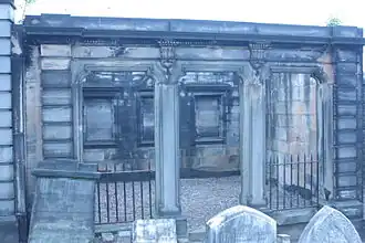He died at Loganbank, a villa in Glencorse[7] south of Edinburgh on 20 August 1891, the day before his 81st birthday.[1] He is buried in his family vault in New Calton Cemetery.
