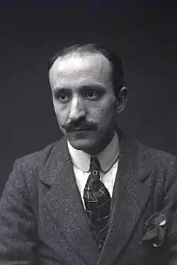 In the early 1930s Martínez was first noted as jefe of Carlist structures in Pamplona.[57] In 1931 latest he became vice-president of the regional Carlist organization. He also assumed presidency of managing board of El Pensamiento Navarro.[58] He became engaged in key party initiatives in the region. In May 1931, prior to the first Republican electoral campaign, Martínez due to his contacts and links to Basque nationalists was instrumental when forging the PNV-Carlist alliance; it emerged as "candidatura católico-fuerista" and proved largely successful.[59] In 1932 with Víctor Morte, Ignacio Baleztena and Gabriel Aldáz he was delegated to represent Navarre in a Carlist committee set up to agree a common stand on autonomous project, drafted for the vasco-navarrese provinces.[60] As the Pamplonese party leader he chaired local meetings[61] and signed various open letters, e.g. the one protesting alleged anti-religious measures.[62] He was also in presidency of numerous Catholic organizations which confronted the secular governmental course: Asociación Católica de Padres de Familia, Asociación para la Defensa de los Religiosos Vasco Navarros[63] and in Consejo Superior Diocesano de la Adoración Nocturna.[64]