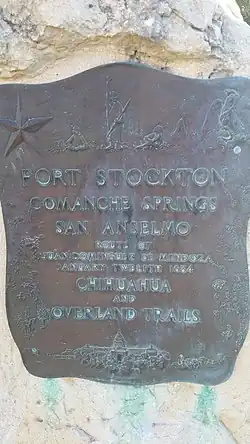 The expedition, often called the Mendoza Expedition, set off from El Paso on 15 December 1683, going down the Rio Grande to La Junta. Fray Antonio de Acevedo was left there in charge of new missions. The rest of the expedition, joined by many Indians, followed Indian trails north to the Pecos River, then followed the Concho River downstream to its junction with the Colorado River. They spent six weeks on what Domínguez called the "glorious San Clemente" river, building a fort, probably near the location of present-day Ballinger, Texas as defense against Apaches and hunting buffalo for hides and food. They fed and baptized many of the friendly local people who visited their camp.[1]
