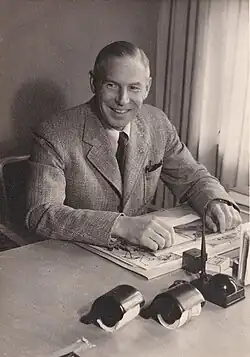 ![]() Kaarlo Könönen at his desk. Date unknown. | |