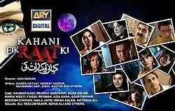 Kahani Eik Raat Ki (Urdu: کہانی ایک رات کی, transl. Story Of One Night) is a Pakistani thriller anthology television series that was broadcast on ARY Digital during 2012–2013. The broadcast consisted mainly of small horror/romantic/thriller stories in a mini format. The show stars Neelam Muneer, Maria Wasti, Omair Rana, Sajal Aly, Ayeza Khan, Sonya Hussain, Noman Ejaz, Sana Fakhar, Aijaz Aslam, Sohai Ali Abro, and many others. The series used to air at 8 p.m. every Friday.[1][2][3]