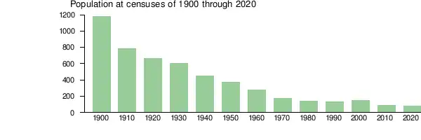 2% of residents were under the age of 18, 1% from 18 to 24, 18% from 25 to 44, 46% from 45 to 64, and 32% who were 65 years of age or older. The median age was 59 years. For every 100 females, there were 98.6 males. The population has declined since 1900:[35]