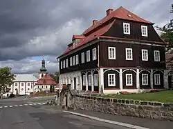 The historic town centre is well preserved and is protected as an urban monument zone. It consists of a medieval road network and large burgher houses from the turn of the 18th and 19th centuries.[9] The main landmark of the town centre is the Church of the Birth of Saint John the Baptist. It is a Baroque building, built in 1715–1718.[10]