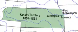 | Capital | Pawnee (provisional; July 2–6, 1855) Fort Leavenworth (provisional) Lecompton (1855–61) Lawrence (de facto, 1858–1861) | ||||||||||