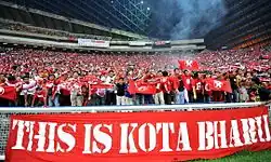 Kelantan Football Club (Malay: Kelab Bola Sepak Kelantan) was a Malaysian professional football club based in Kota Bharu, Kelantan. Founded in 1946, the club had a long-standing rivalry with Terengganu. The two east coast clubs were involved in the East Coast Derby.[4] Their home was the 22,000-seat Sultan Muhammad IV Stadium. Kelantan's regular kit colours were red shirt and shorts with a white pattern on the side.[5]