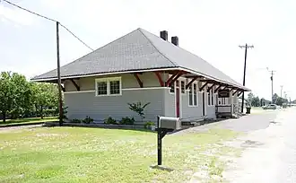 Kershaw Depot, also known as the Southern Railway Depot, is a historic train station located at Kershaw, Lancaster County, South Carolina. It was built in 1926, by the Southern Railway, and is the second or third depot built in Kershaw. The interior plan consists of a central ticketing area flanked by white and "colored" waiting areas. The Southern Railway sold the depot in 1945, and it has since been used as a florist and craft shop.[2][3]