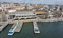 Kherson River Port (Ukrainian: Херсонський річковий порт) is a large transport hub in Kherson where river, sea, rail and road transport interconnect.[3] It is on the left bank of the Koshevaya or Koshova river,[3] leading up to where it enters the Dnieper river. It has seven ship berths along 950 metres of dock.[3]