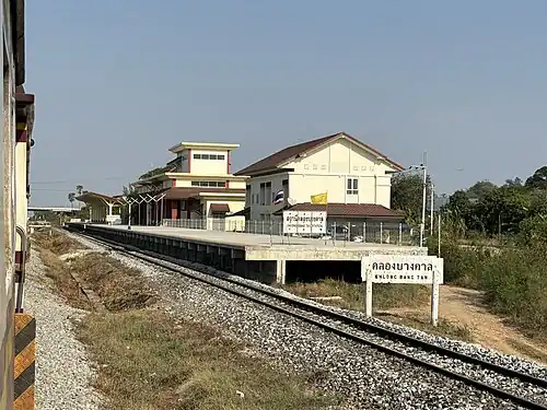 Khlong Bang Tan railway station (Thai: คลองบางตาล) is a railway station located in Nong Kop Subdistrict, Ban Pong District, Ratchaburi. It is a class 3 railway station located 58.979 km (36.6 mi) from Thon Buri railway station.