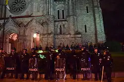 Outside the Cathedral Basilica of Saint Louis about 75 vigilers held a moment of silence for Martin and others. St. Louis Police officers in riot gear stood ready in front of the cathedral.[9]