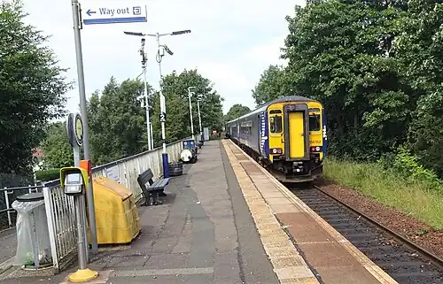 Platform extension work started in September 2009 to cater for longer units associated with the track doubling works between Stewarton and Lugton.[3]