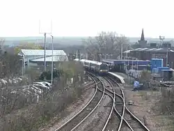 Originally, only the south platform was covered, until a re-fit of the station was undertaken towards the end of the 19th century.[5] In the late 19th and early 20th centuries, the station was surrounded by various linoleum works, which had sidings allowing the product to be shipped via the main line.[7]