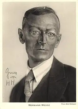 ![]() Photograph of Hesse by Gret Widmann. Signed by Hesse in pencil, 'Gruss von H H' (before 1931) | |