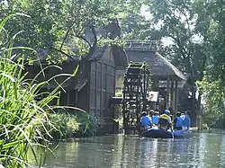 Despite coming off of the award-winning Dersu Uzala (1975) and Kagemusha (1980) and the critically acclaimed Ran (1985), Kurosawa had trouble financing the film.[8] Rejected by his usual studio Toho, Bilge Ebiri wrote that many in the Japanese film industry knew Kurosawa's projects rarely turned a major profit, but also wrote the director knew that the studio heads were concerned about the film's "attack on the country's nuclear power program."[8] American director Steven Spielberg, a fan of Kurosawa, helped get the director a deal with Warner Bros., while George Lucas, who previously helped Kurosawa finance Kagemusha, had his company Industrial Light & Magic (ILM) provide the special effects for Dreams at cost.[8] The film is co-produced by Kurosawa's son, Hisao, and his nephew, Yasuo "Mike" Inoue.[11] Ishirō Honda served as a creative consultant for the film.[7] There is a misconception that Honda co-wrote or directed "The Tunnel".[12] In actuality, Kurosawa had him instruct the actors in the segment on how to march and hold their guns due to his experience in the military.[10][12] Costume designer Emi Wada was aided by Kurosawa's daughter, Kazuko.[11]