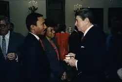 In February 1996, Mfume left the House to accept the presidency of the National Association for the Advancement of Colored People (NAACP), saying that he could do more to improve American civil rights there than in Congress.[9] He reformed the NAACP's finances to pay off its considerable debt while pursuing the cause of civil rights advancement for African Americans. Though many in Baltimore wanted Mfume to run for mayor in the 1999 election, he stayed with the NAACP.[10]