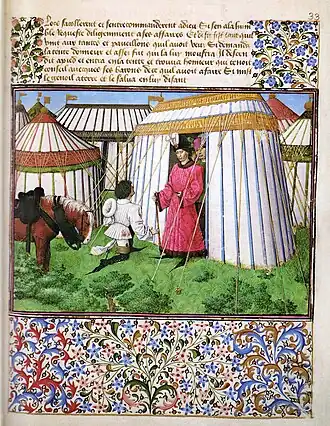 - ^ The hunting pavilion of Roi René is a sixteenth-century building in the Domaine de Valabre, Gardanne, a site dating back to the thirteenth century. The Seigneurie of Gardanne was acquired in 1454 by René, who administered it until his death in 1480; apart from establishing the domain as an agricultural centre for viticulture, sheep-rearing and olive-growing, he used it as a base for hunting and fishing.