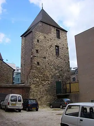 Landsfort Herle was a fortification with a moat in the centre of Heerlen, Netherlands (roughly the current Pancratiusplein). It was probably built by the counts of Ahr-Hochstaden (also referred to as Heren van Are)[1] The name Landsfort (‘fort of the land’) was introduced in the 19th century, based on the fact that the fortification falls under the responsibility of the land. The fort can more accurately be classified as a so called fortress church (German: Kirchenburg); a (fortified) church surrounded by a curtain wall. Landsfort Herle appears to be the only Kirchenburg in the Netherlands (not to be confused with Wehrkirchen or fortified churches, which are more numerous, but lack the curtain wall). In the 13th century Heerlen and landsfort Herle, came into the possession of the Dukes of Brabant.[1] The Landsfort was (re)built by the Dukes of Brabant in 1244.[2]