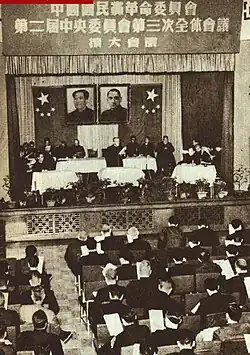 Chairman Li Jishen, He Xiangning, and Feng Yuxiang were selected as the central leadership of the organization.[4] In 1949, Li Jishen and other representatives of the RCCK were invited by the CCP to participate in Chinese People's Political Consultative Conference.[1]