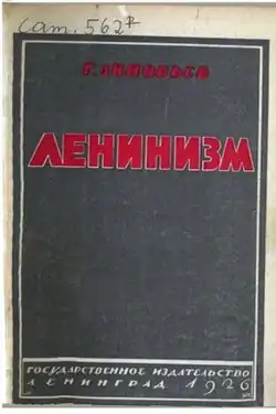 Leninism: Introduction to the Study of Leninism (Russian:Leninizm: Vvedenie v izuchenie Leninizma) is a 1925 work by Soviet politician Grigory Zinoviev.[1] Leninism would be translated into English by the Communist Party of Great Britain as "Bolshevism or Trotskyism: Where the Line of Trotskyism is Leading" as part of The Errors of Trotskyism in May 1925.[2] The work represents a primary document to the ideological tensions that were building within the Politburo, Central Committee, and the Communist Party of the Soviet Union.